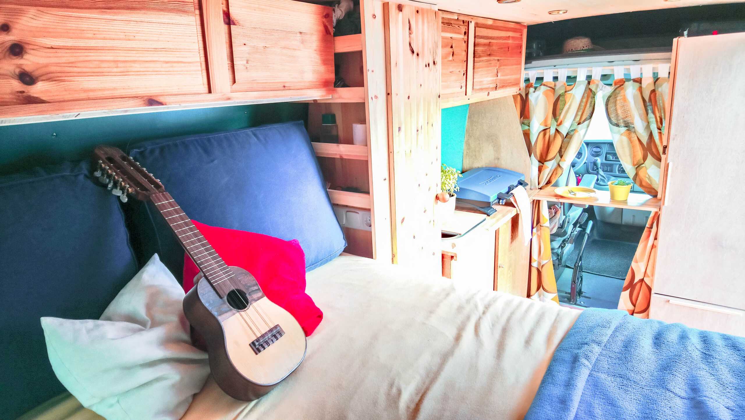 The name was given to her the first day she arrived home. It was like a panda, very unique, and very rare to see, because there are few of them. Panda was the first modified van here in Europe and was the precursor of all this crazy idea. Made practically of 75% with recycled and reused materials; wood, floor, handles, kitchen, electricity, almost everything ended up as part of Panda's essence, incorporated harmonically within the build's design concept. Having a lot of surface in the kitchen and the most possible amount of space to move within her, the bed played a second role since the area of higher use was going to be the dining room. Like the rest of the Vans, the intention was always to make her as warm as possible, transforming it into a small home where I would spend the rest of my time in Europe. As that van was thought for me, had heaps of storage, because I always give priority to that. I was taking advantage of every corner to make mini-drawers or shelves, even the drawers under the bed were thought this way to leave the kitchen area free as much as possible That's how my desire to build another one was born, and so was the desire to create Toba.